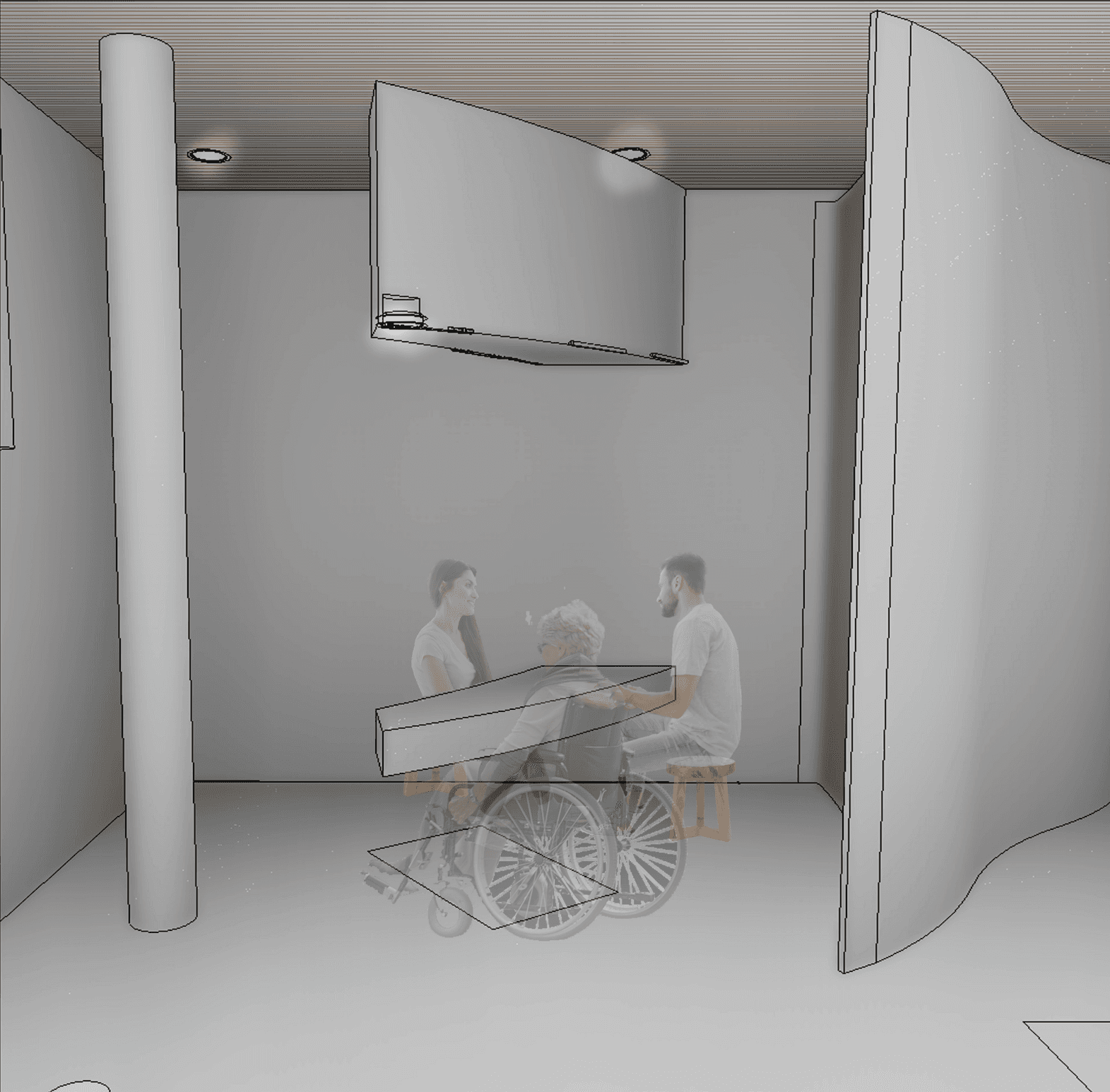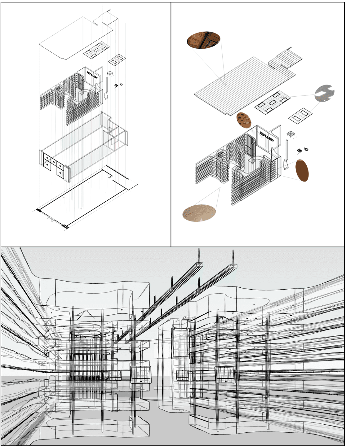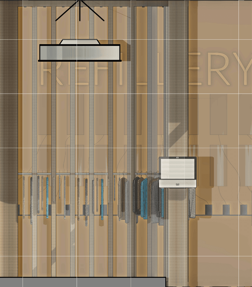 The concept for this project is Traceless. Traces are everywhere and left by everything. We leave traces everywhere, everyday in different ways. Products we use are made then erased and remade and the whole cycle is on repeat. We talk about wanting to leave the least amount of a carbon footprint into the world , if we individually we make a change, big or small, it will help in the long run. The whole store is designed for the user to feel untraceable resulting in a traceless design. Anywhere you stand in the store, it allows you to see beyond what you are looking at due to the open shelving. This design creates an experience for the user at each different pod. Before moving onto the next the user will plug in items to the Kiosk.
