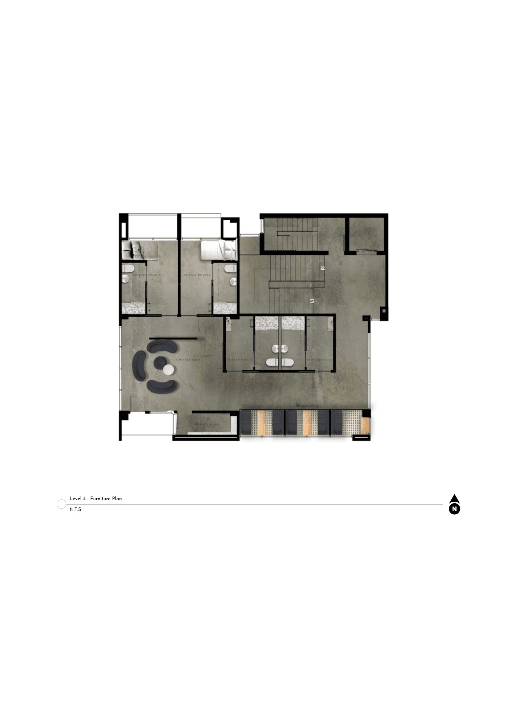 is fully realized, offering a breathtaking and open atmosphere. This thoughtfully designed floorplan encapsulates the essence of contrasting identities, guiding visitors through an immersive experience that seamlessly transitions from the earthy and substantial to the ethereal and weightless.